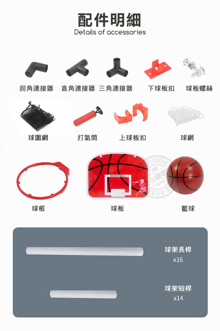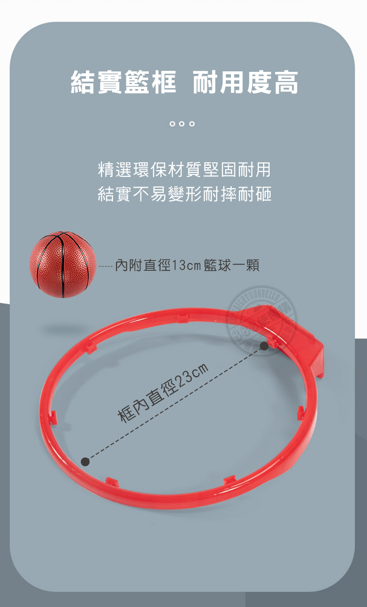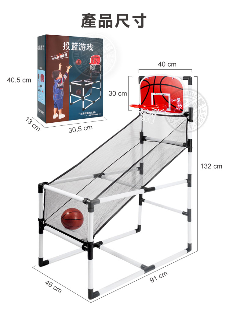 ■ 外盒:40.5*30.5*13■ 籃球架展開:132*91*46■ 籃框內直徑:23*23■ 籃球:13*13*13以上單位公分;誤差值±1公分■ 樣式總類:共1款(如照片所拍)■ 包裝方式:彩盒包裝■ 商檢證號:M33584 批號:2010305