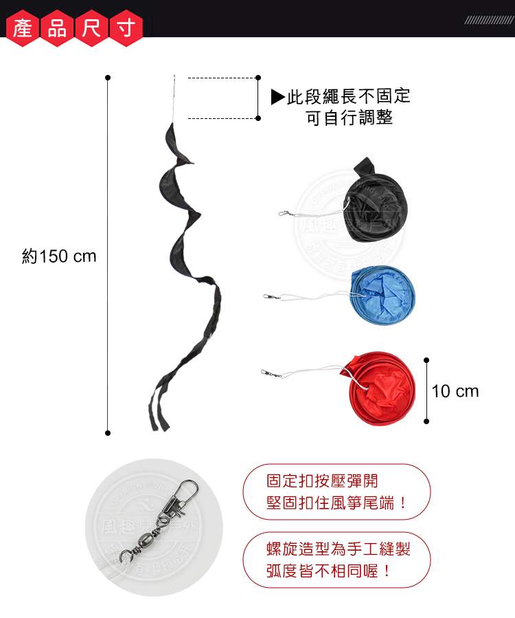 ■ 外袋:10*10*3■ 風箏尾:10*150以上單位公分;誤差值±1公分■ 樣式總類:共3款(如照片所拍)■ 可否挑款:可以挑選款式■ 包裝方式:opp袋包裝■ 商檢證號:M13091 批號:2308001