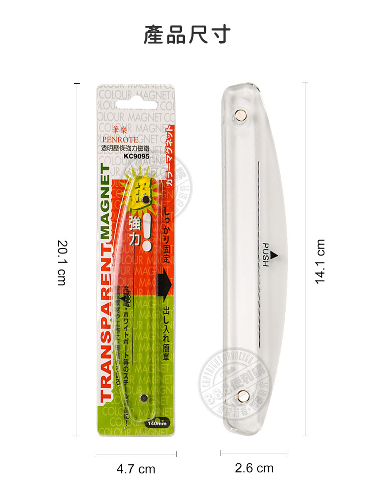 14公分透明壓條強力白板吸鐵(磁鐵)